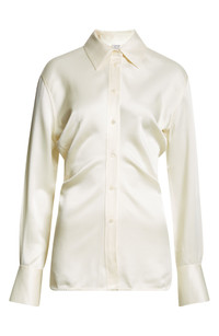 TOTEME Slouch Waist Satin Button-Up Shirt in Macadamia at Nordstrom