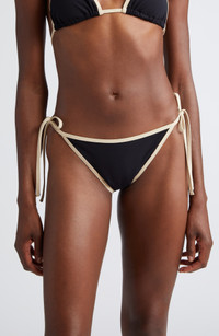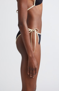 TOTEME Stripe Edge Side Tie Bikini Bottoms in Black at Nordstrom