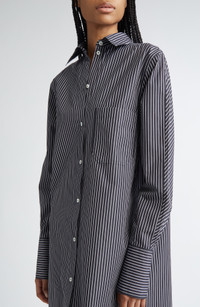 TOTEME Stripe Oversize Long Sleeve Organic Cotton Poplin Shirtdress in Black/White at Nordstrom