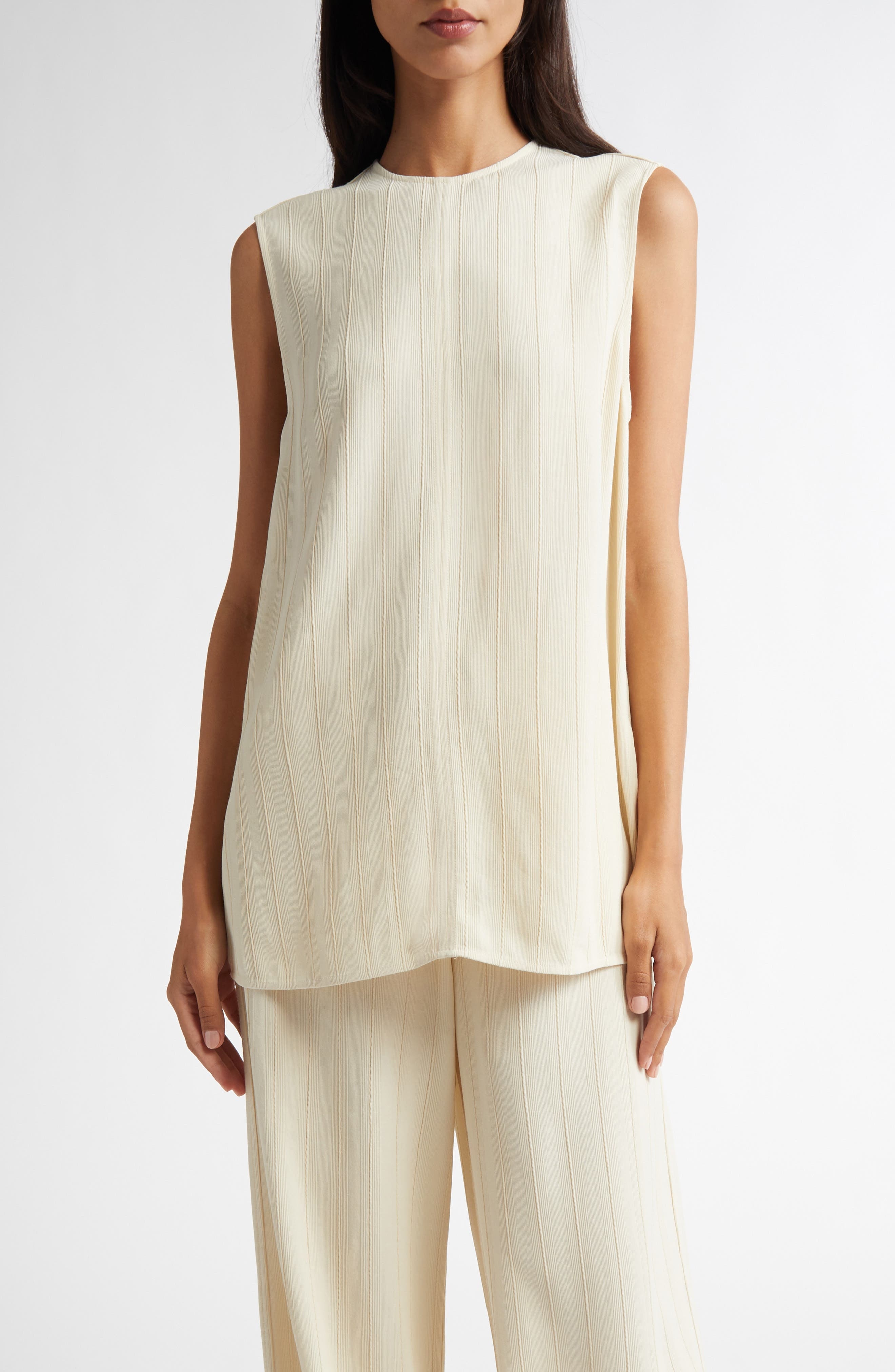 TOTEME Textured Stripe Sleeveless Top in Ecru at Nordstrom