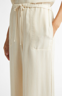 Woven stripe drawstring trousers ecru