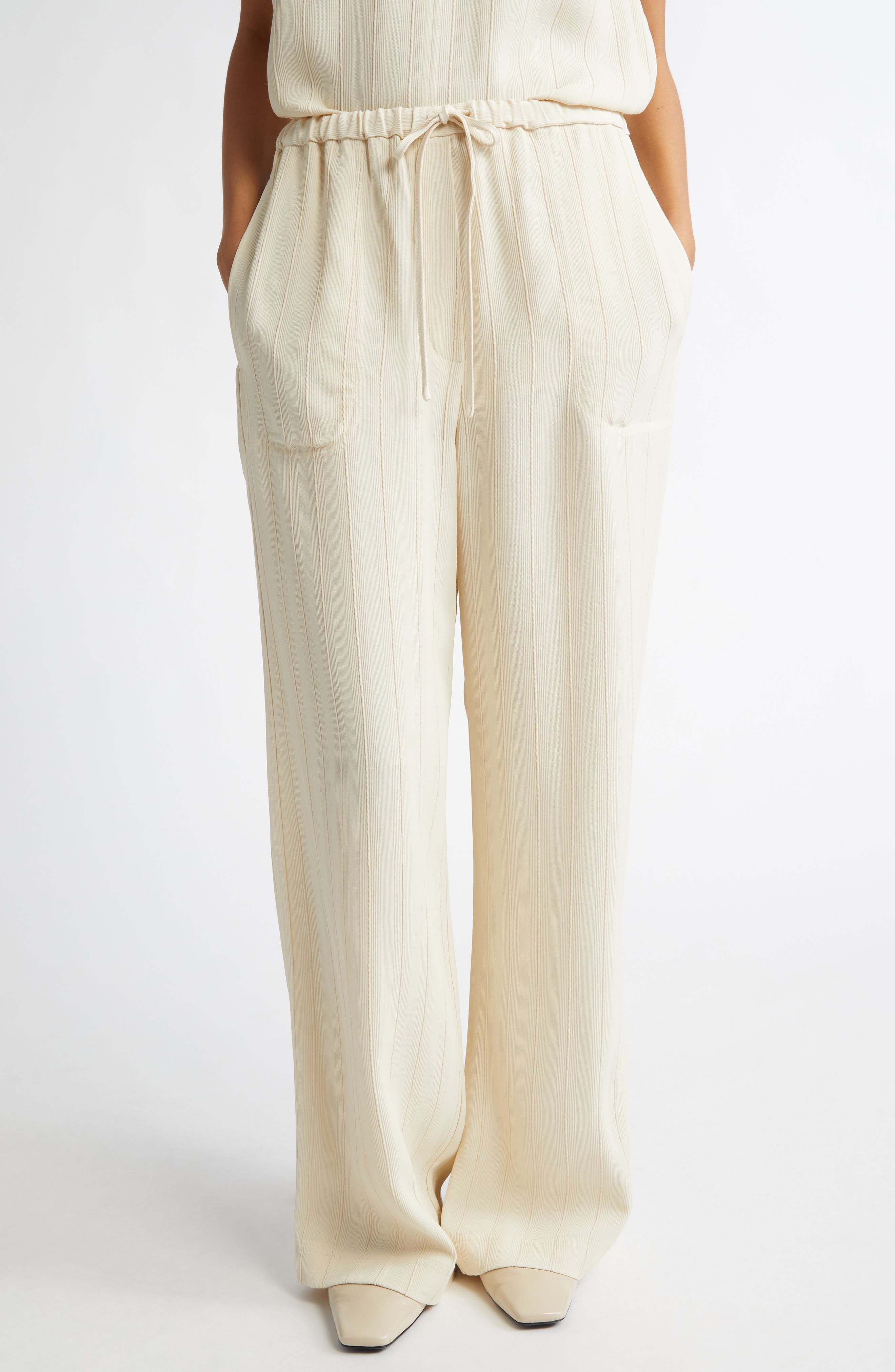 TOTEME Woven Stripe Drawstring Trousers in Ecru at Nordstrom