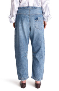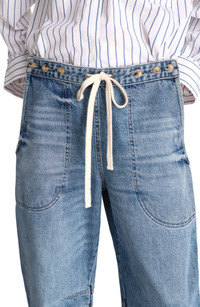 Designed in a desirous barrel silhouette, these laid-back jeans are updated with a drapey waist tie for a comfortable fit. Front button closure Attached waist tie Front slant pockets; back patch pocket 100% cotton Dry clean Made in the USA