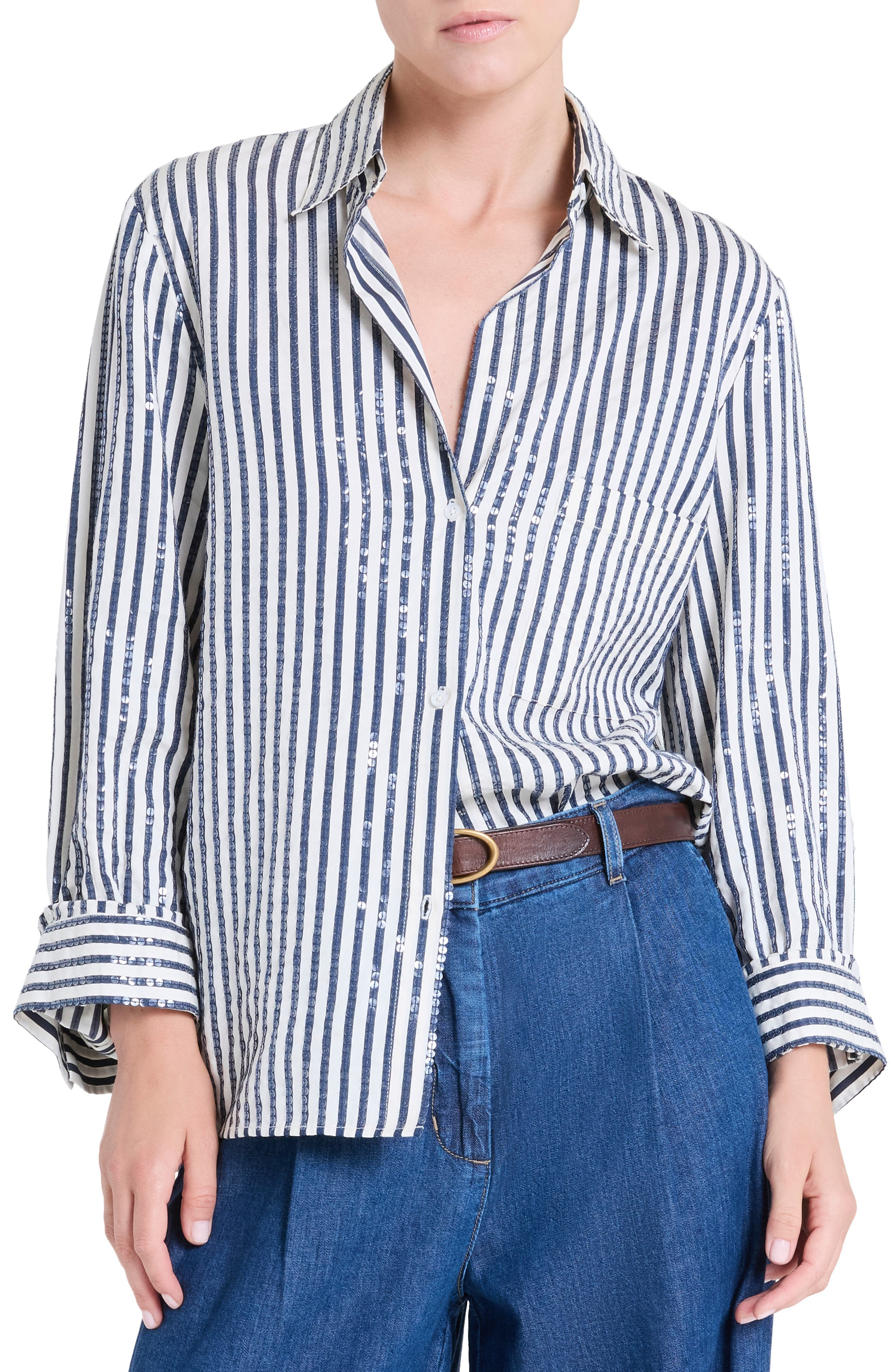 TWP Next Morning Sequin Stripe Button-Up Shirt in Indigo /White at Nordstrom