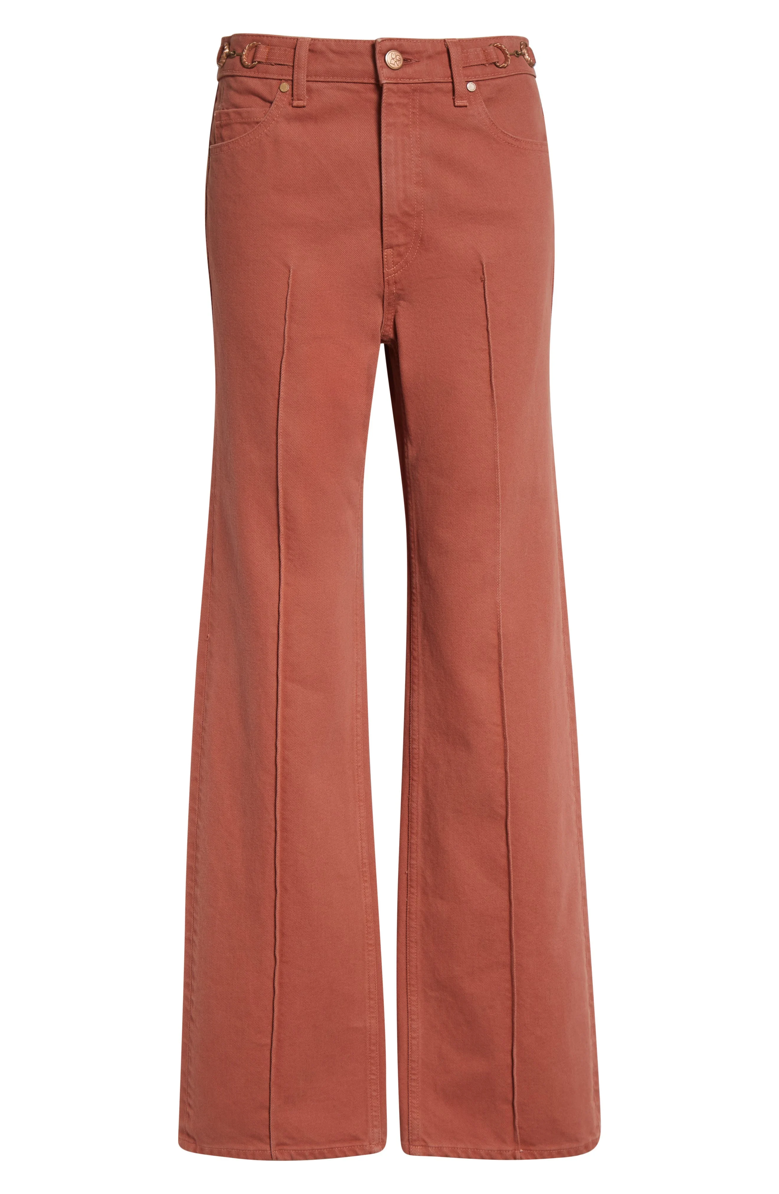 Structured and clean-lined, these straight-leg jeans are cut from sturdy nonstretch denim with pintucks down the legs for a sculpted look. The rosy wash elevates the style, while the five-pocket construction grounds the look in everyday wear. Zip fly with button closure Five-pocket style 100% cotton Dry clean or machine wash, tumble dry Made in the USA