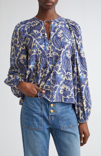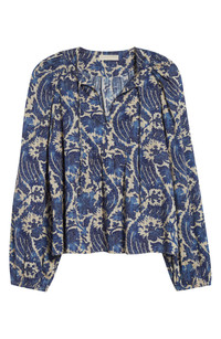 A flourish of flowers paints drama over this long-sleeve top cut with a relaxed, blousy fit that makes the most of the fine, airy fabric. Split neck with ties Long sleeves 66% cotton, 34% viscose Hand wash, line dry Imported