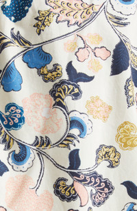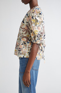 Swirling stitching enhances the enchantment of this boxy top framed by voluminous puff sleeves. Back keyhole with button-and-loop closure Jewel neck Short sleeves 100% cotton Hand wash, line dry Imported