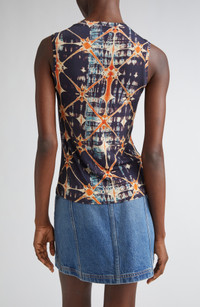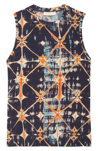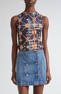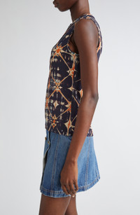 Allover inky blooms romance this soft sleeveless top kissed with stretch for comfort and shape. Crewneck Sleeveless 91% rayon, 9% elastane Hand wash, line dry Imported