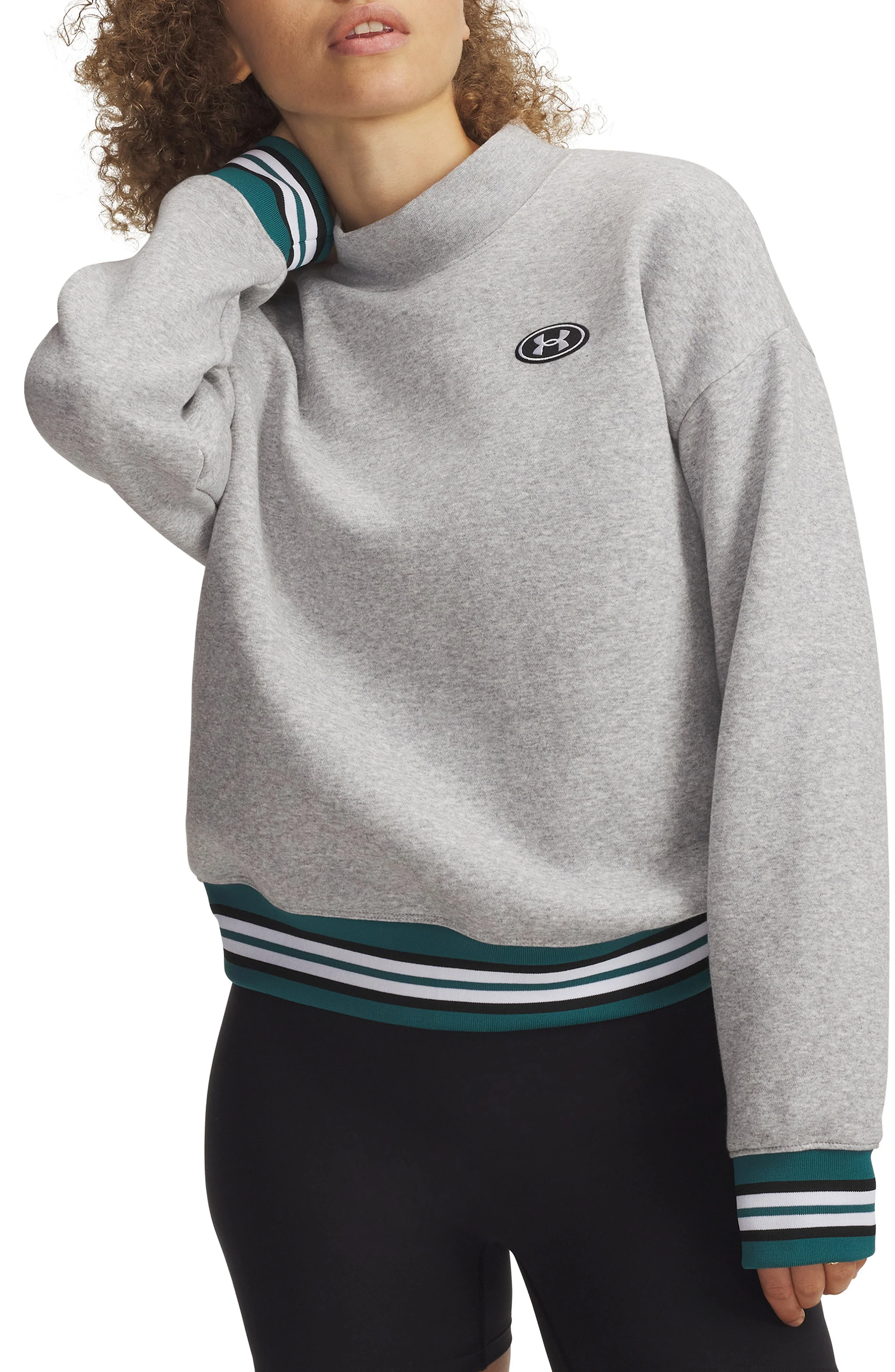 Under Armour Icon Patch Crewneck Sweatshirt in Gray Light Heather /White at Nordstrom