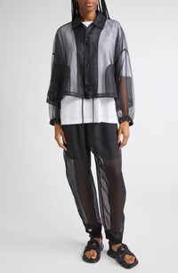 For spring '25, Jun Takahashi toys with the idea of making 'safe' staples feel more dangerous and sexier. Take, for example, this sultry take on a sporty coach's jacket fashioned from transparent organdy with a crisp handfeel. Front snap closure Spread collar Dropped shoulders Elastic cuffs Front welt pockets Drawstring waist Sheer Unlined 100% polyester Dry clean Made in Japan Designer Clothing Asian & Pacific Islander Owned/Founded
