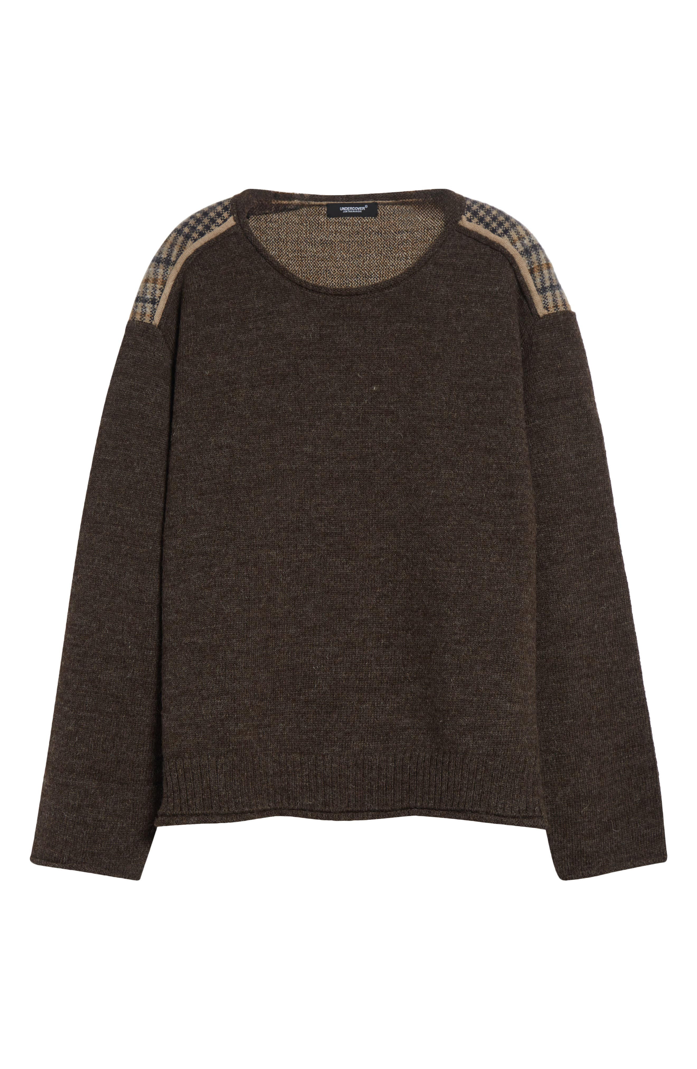 Undercover Paneled Solid & Plaid Wool Sweater in Top Brown at Nordstrom
