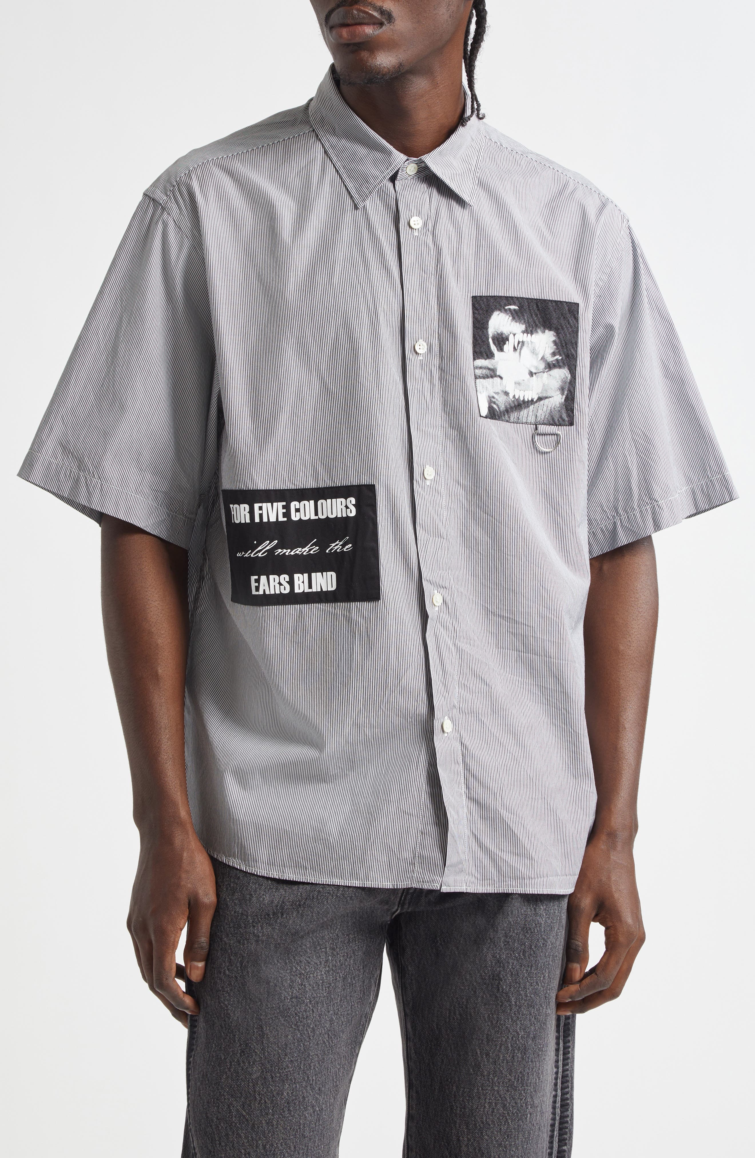 Undercover Patchwork Stripe Button-Up Shirt in Black St at Nordstrom