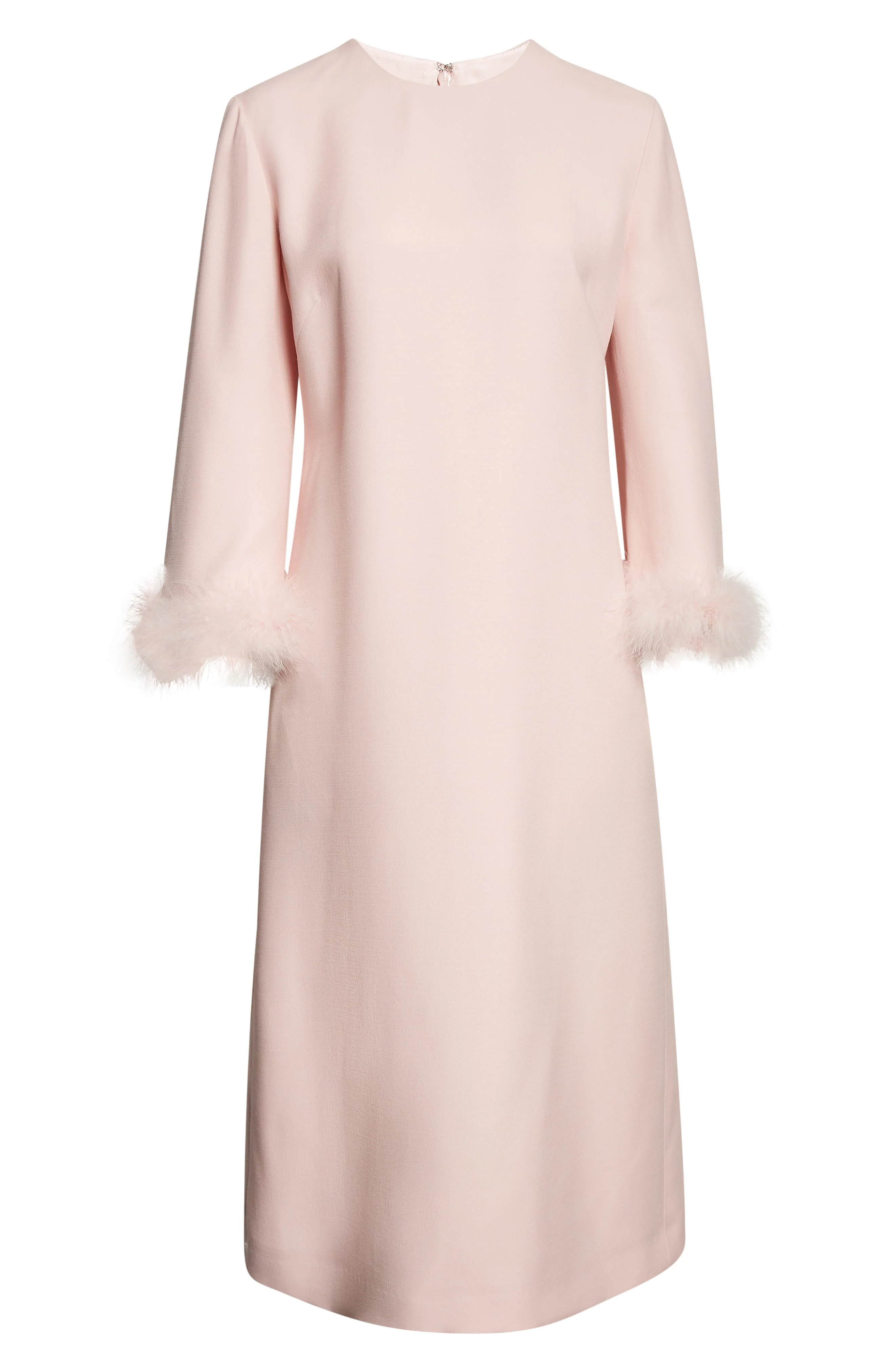 Valentino Feather Cuff Crepe Couture Midi Dress in Rose at Nordstrom