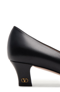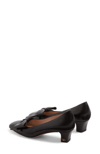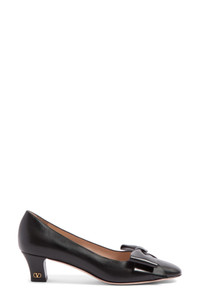 A layered bow adds a jaunty flourish to this round-toe pump that's made in Italy from buttery-soft kid leather and set on a walkable sculptural heel with VLOGO hardware. 1 3/4" (45mm) heel Leather upper, lining and sole Made in Italy Designer Shoes