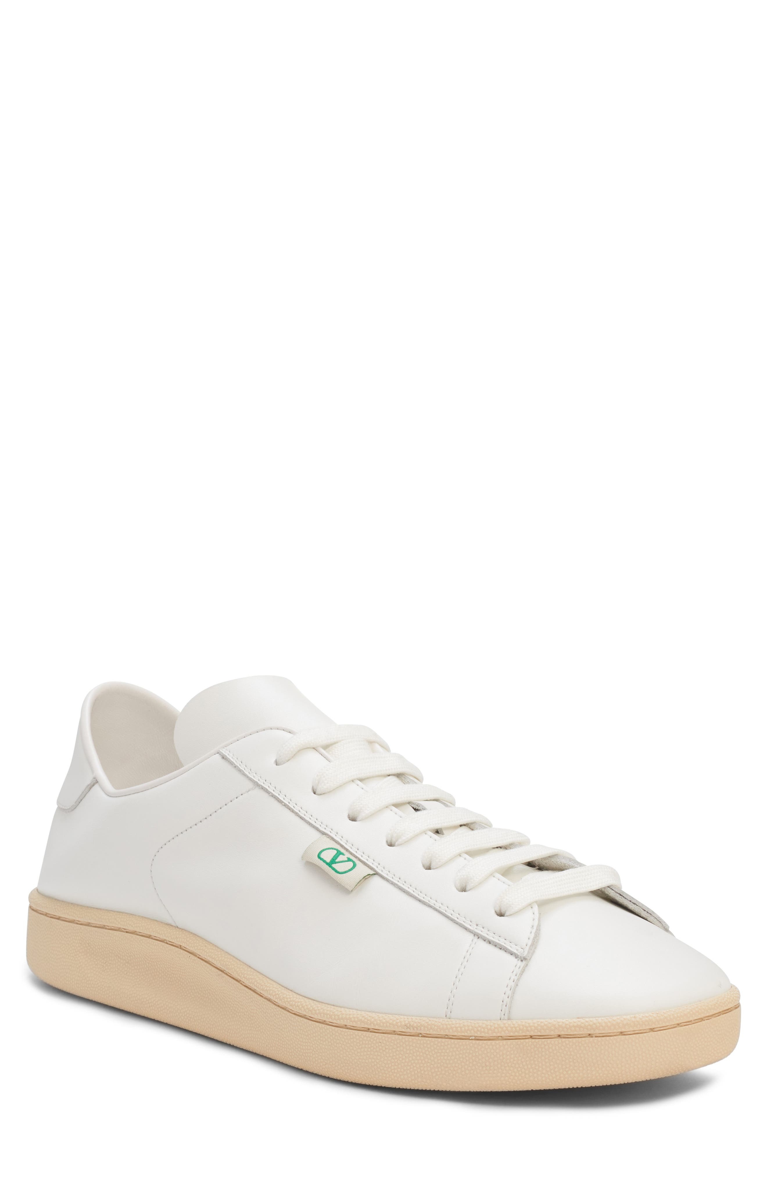 Valentino Garavani Calfskin Leather Sneaker in Bianco/Green Briar/Bianco at Nordstrom