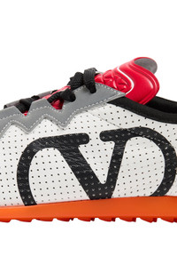 A bold VLOGO stands out on the sidewall of this perforated-leather sneaker crafted in a retro runner-inspired profile with a color-pop textured tongue. The statement look is part of creative director Alessandro Michele's debut collection for the label—Resort '25. Lace-up style Leather upper/textile lining/synthetic sole Made in Italy Designer Shoes
