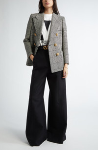 Glen plaid enhances the timeless style of this double-breasted wool blazer given a glam update thanks to sparkling jewelry-inspired buttons. 27" length (size 36 IT) Double-breasted button closure Peaked lapels Four-button cuffs Chest welt pocket; front patch pockets Lined 100% virgin wool Dry clean Made in Italy Designer Clothing