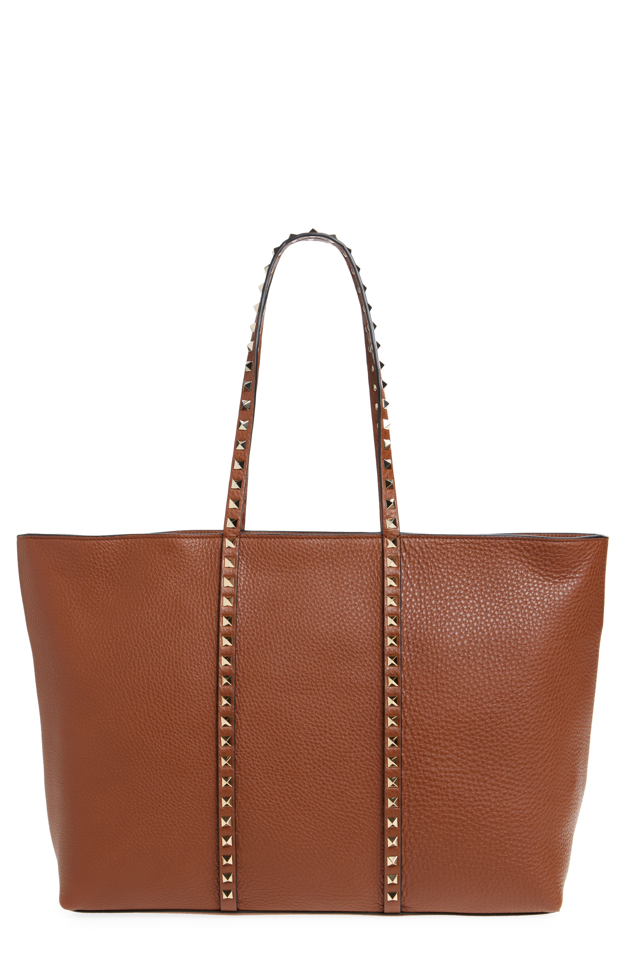Signature pyramid studs punctuate the richly pebbled calfskin of a moderately sized tote that pairs perfectly with a nested zip pouch. Top zip closure Shoulder straps Removable tethered zip pouch Leather Made in Italy Designer Handbags
