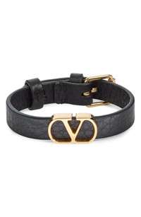 Black VLogo Signature Grainy Calfskin Bracelet
