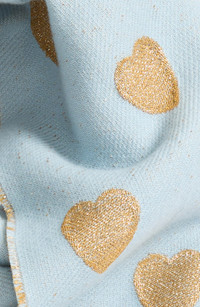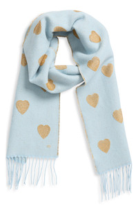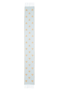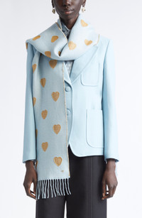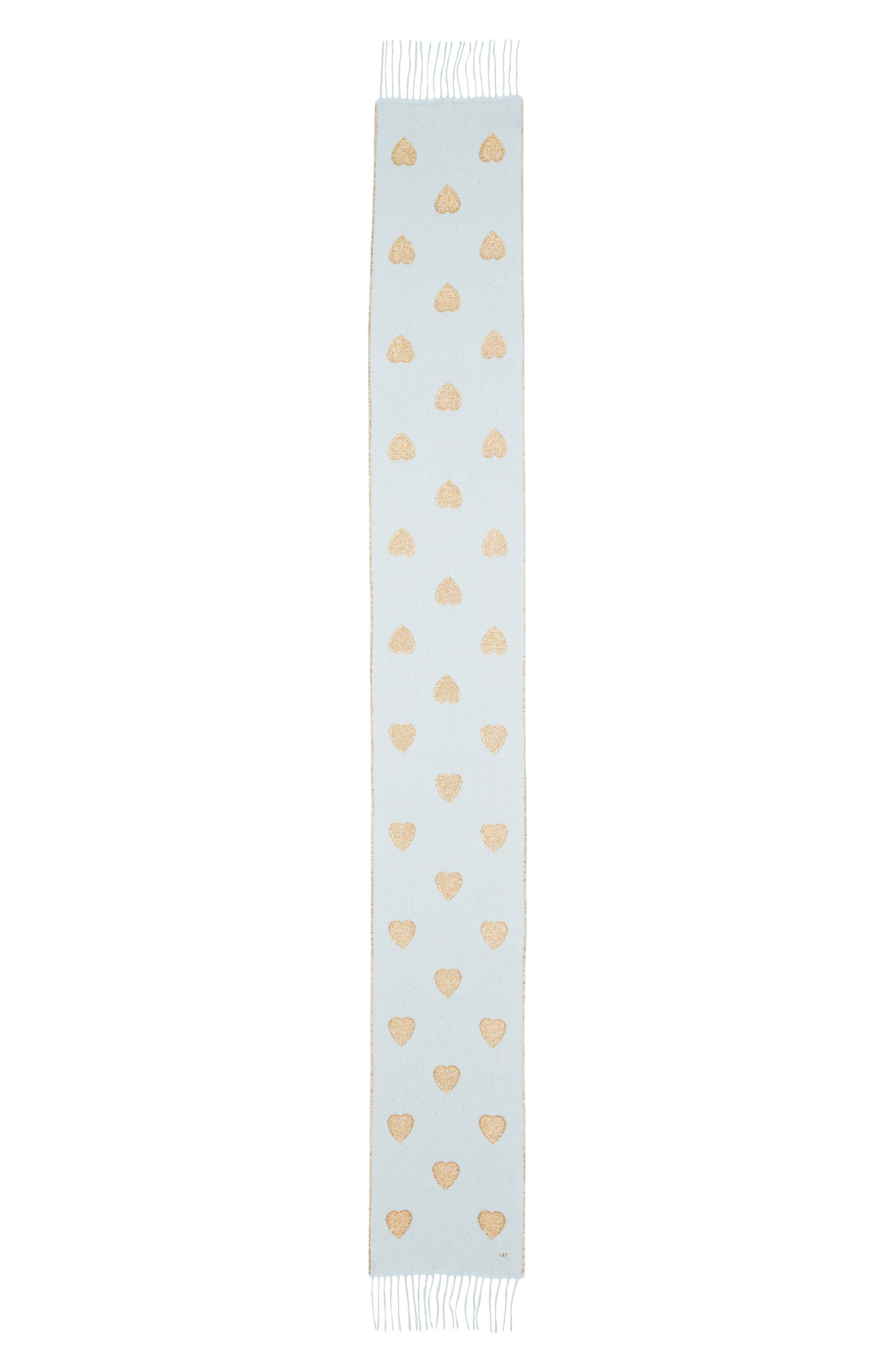 Valentino Garavani Metallic Heart Jacquard Virgin Wool & Cashmere Blend Fringe Scarf in Celeste Oro/