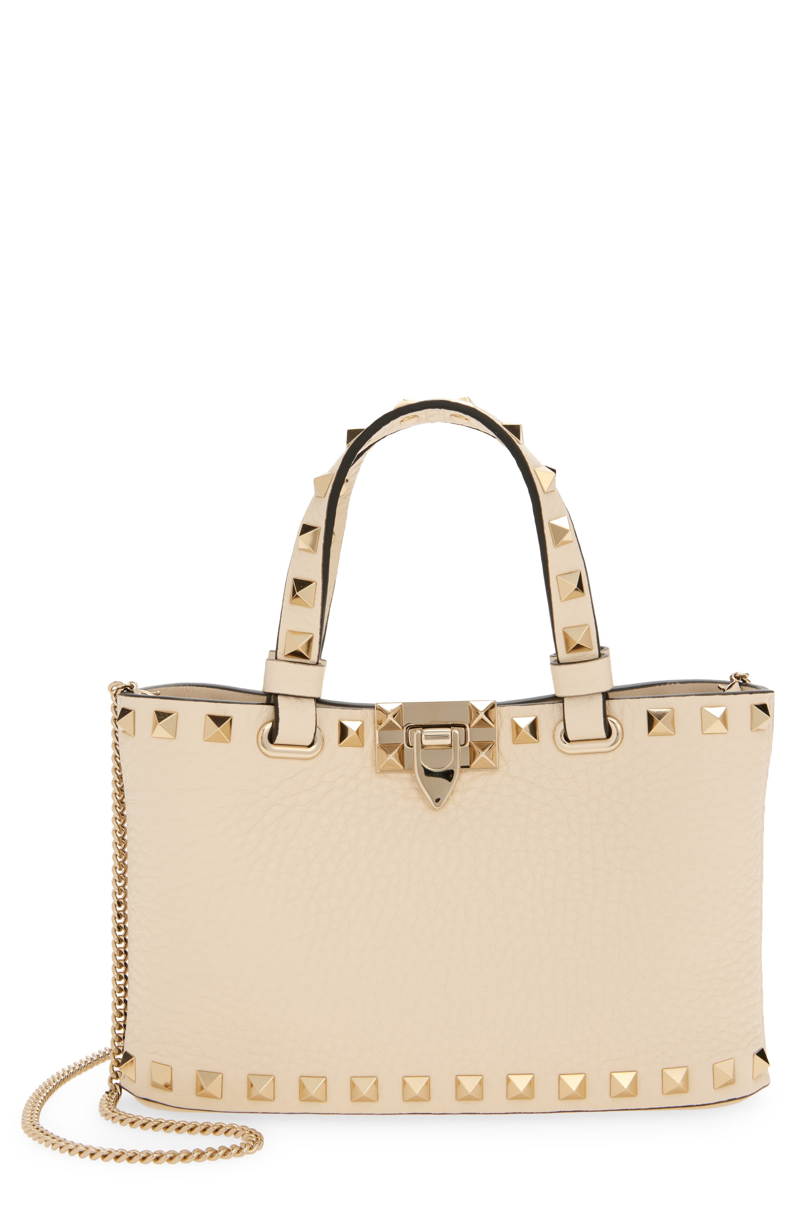 Valentino Garavani Mini Rockstud Leather Top Handle Bag in Light Ivory at Nordstrom