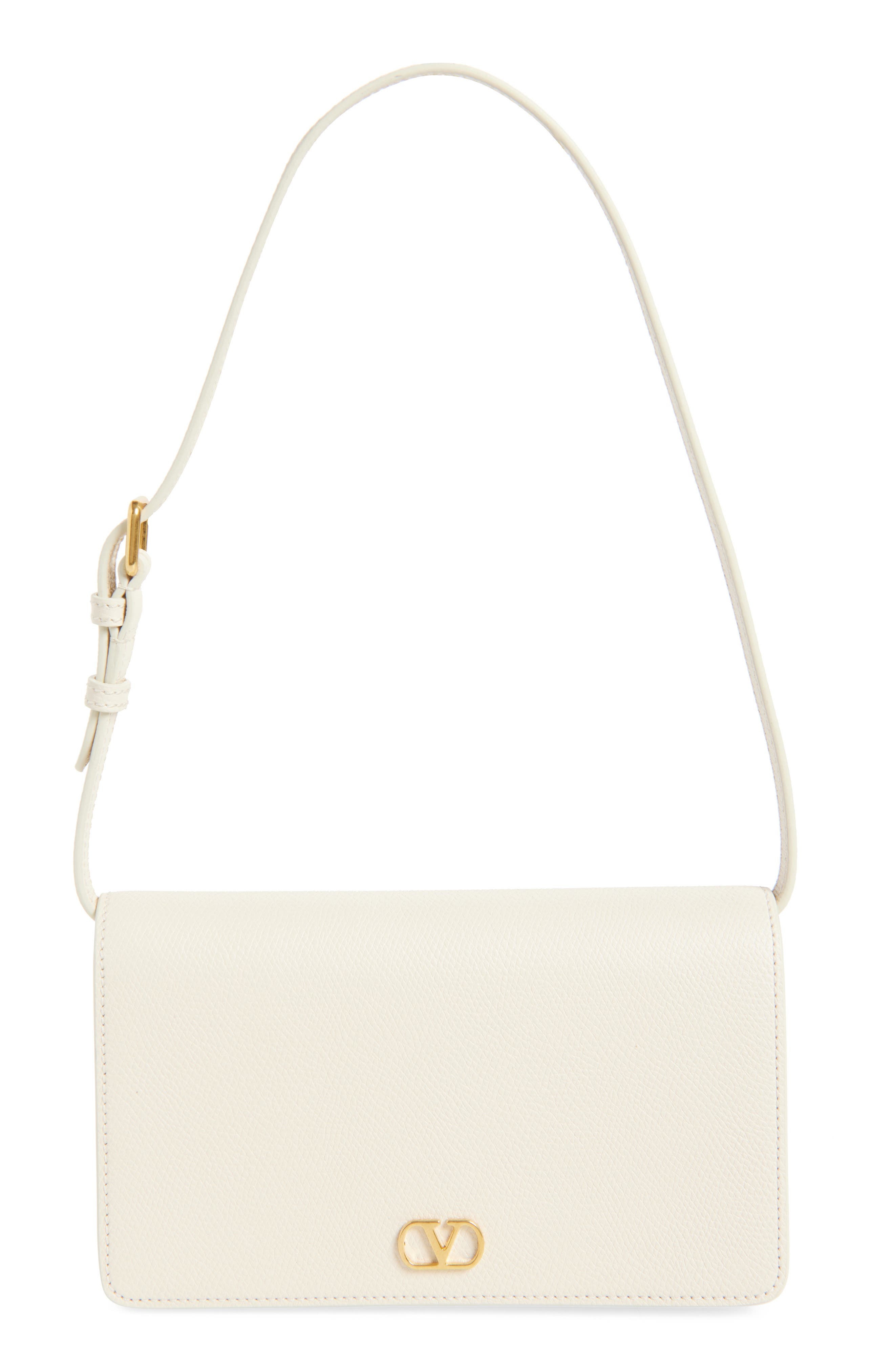 The label's signature VLOGO gleams at the flap of this compact lambskin-leather bag made versatile with a removable strap that allows for shoulder wear or clutch carry. Flap closure Removable, adjustable shoulder strap Interior zip pocket; three card slots Leather Made in Italy Designer Handbags