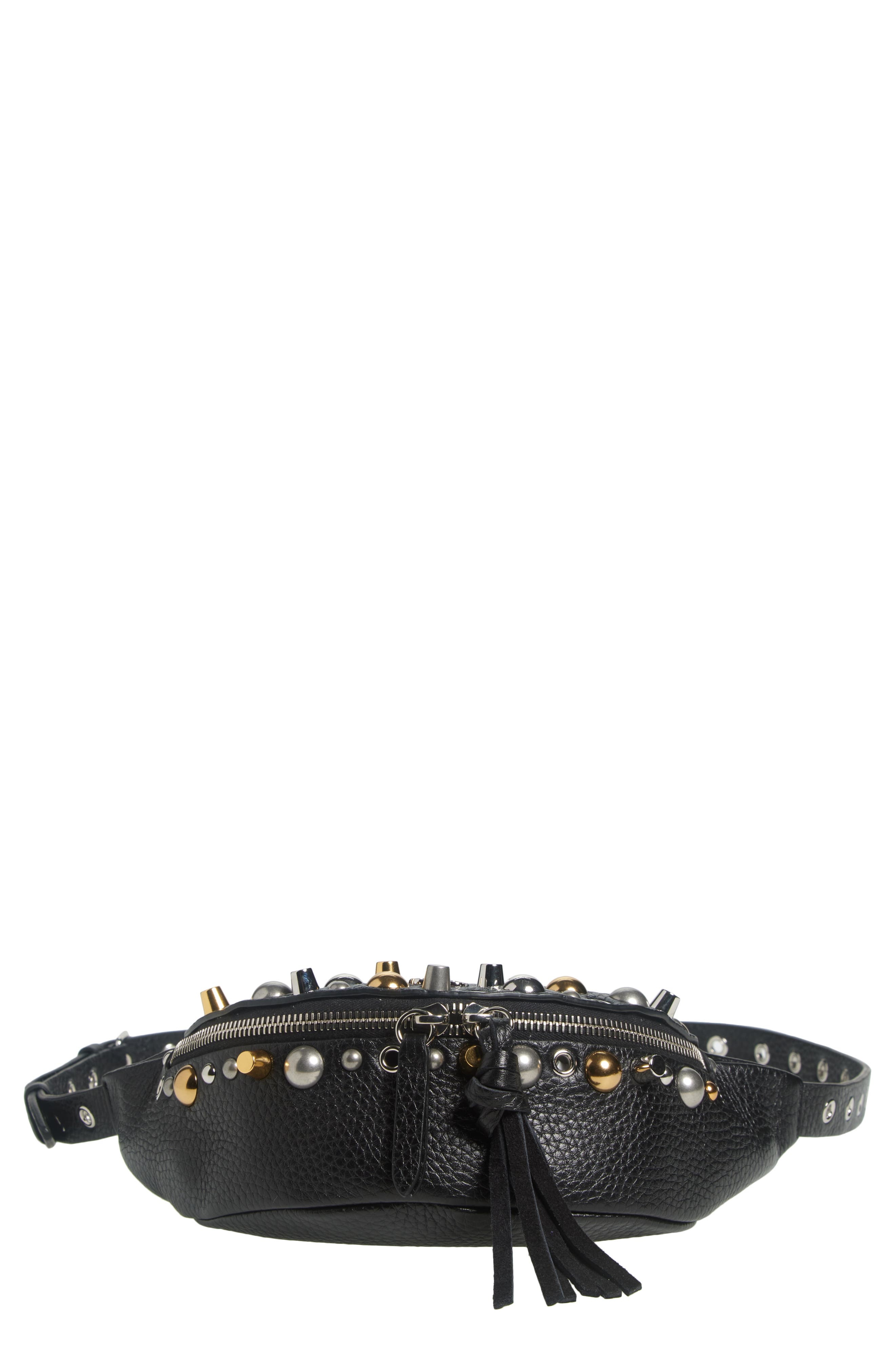 A signature VLOGO and a mix of studs and grommets amp up the hardware shine of this grainy-calfskin belt bag featured in Alessandro Michele's debut collection, 'Avant les Debuts.' Two-way top zip-around closure Adjustable belt/crossbody strap with buckle Calfskin-leather lining Leather Made in Italy Designer Handbags