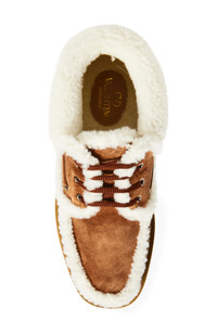 Genuine shearling trim and lining brings plush, cozy comfort to this boat-shoe-influenced desert boot featuring a lambskin leather upper grounded on a toothy lug sole. 1" (25mm) heel Lace-up style Leather and genuine shearling (Italy) upper/genuine shearling lining/synthetic sole Made in Italy Designer Clothing