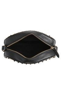House-signature Rockstuds trace the perimeter of this compact camera bag crafted from richly grained Italian leather and suspended from a curb-chain strap. Top zip closure Chain strap Leather Made in Italy Designer Handbags