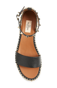 Golden pyramid studs highlight the grainy calfskin leather of this ankle-strap sandal with whipstitching along the jute-wrapped platform and low-wedge heel. 2" (51mm) heel; 1" platform; 1" slope (size 39) Adjustable ankle strap with buckle closure Leather upper and lining/synthetic sole Made in Italy Designer Shoes