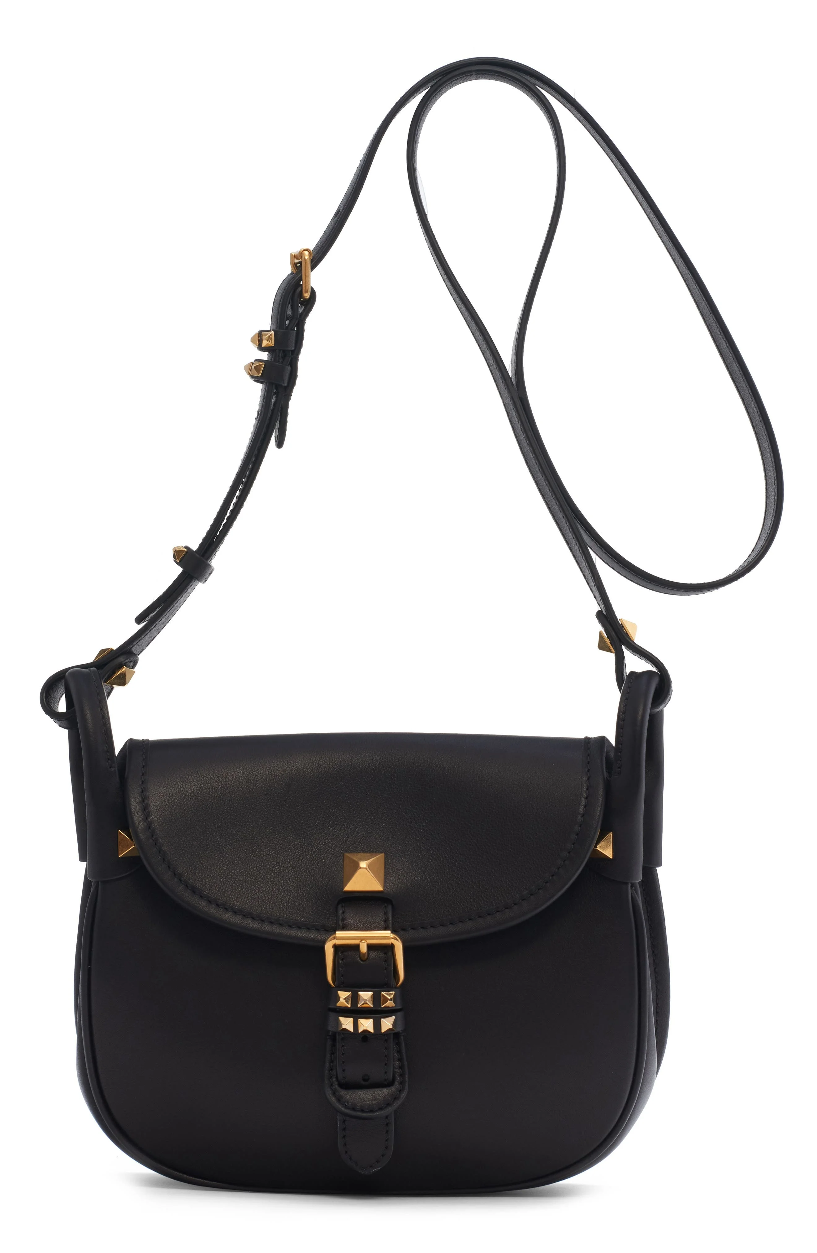 Welcome a new silhouette to Valentino's handbag lineup with this lookbook-featured shoulder bag crafted from smooth calfskin leather accented with signature Rockstuds. Flap closure Adjustable shoulder strap Leather Made in Italy Designer Handbags