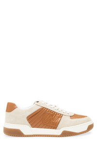 A VLOGO based on an archival motif from 1979 brands the trapunto-stitched sidewall of a colorblocked sneaker made from a mix of smooth leather and velvety suede. Lace-up style Leather upper/textile lining/rubber sole Made in Italy Designer Shoes
