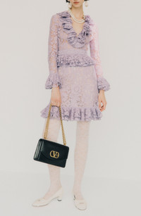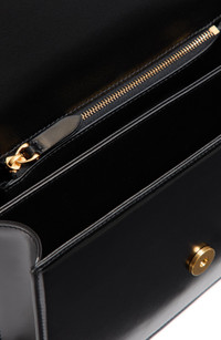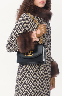 Valentino's Vain bag is an instant classic in shiny calfskin leather with golden VLOGO hardware gleaming on the front of the structured style. The pull-through chain strap easily adjusts for shoulder or crossbody wear, while the compact size and organized interior make it perfect for carrying your daily essentials. Magnetic-snap flap closure Pull-through chain strap Dual interior compartments with center divider; zip and wall pockets Structured silhouette with flat base for stability Leather lining Leather Made in Italy Designer Handbags