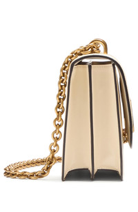 Valentino's Vain bag is an instant classic in shiny calfskin leather with golden VLOGO hardware gleaming on the front of the structured style. The pull-through chain strap easily adjusts for shoulder or crossbody wear, while the compact size and organized interior make it perfect for carrying your daily essentials. Magnetic-snap flap closure Pull-through chain strap Dual interior compartments with center divider; zip and wall pockets Structured silhouette with flat base for stability Leather lining Leather Made in Italy Designer Handbags