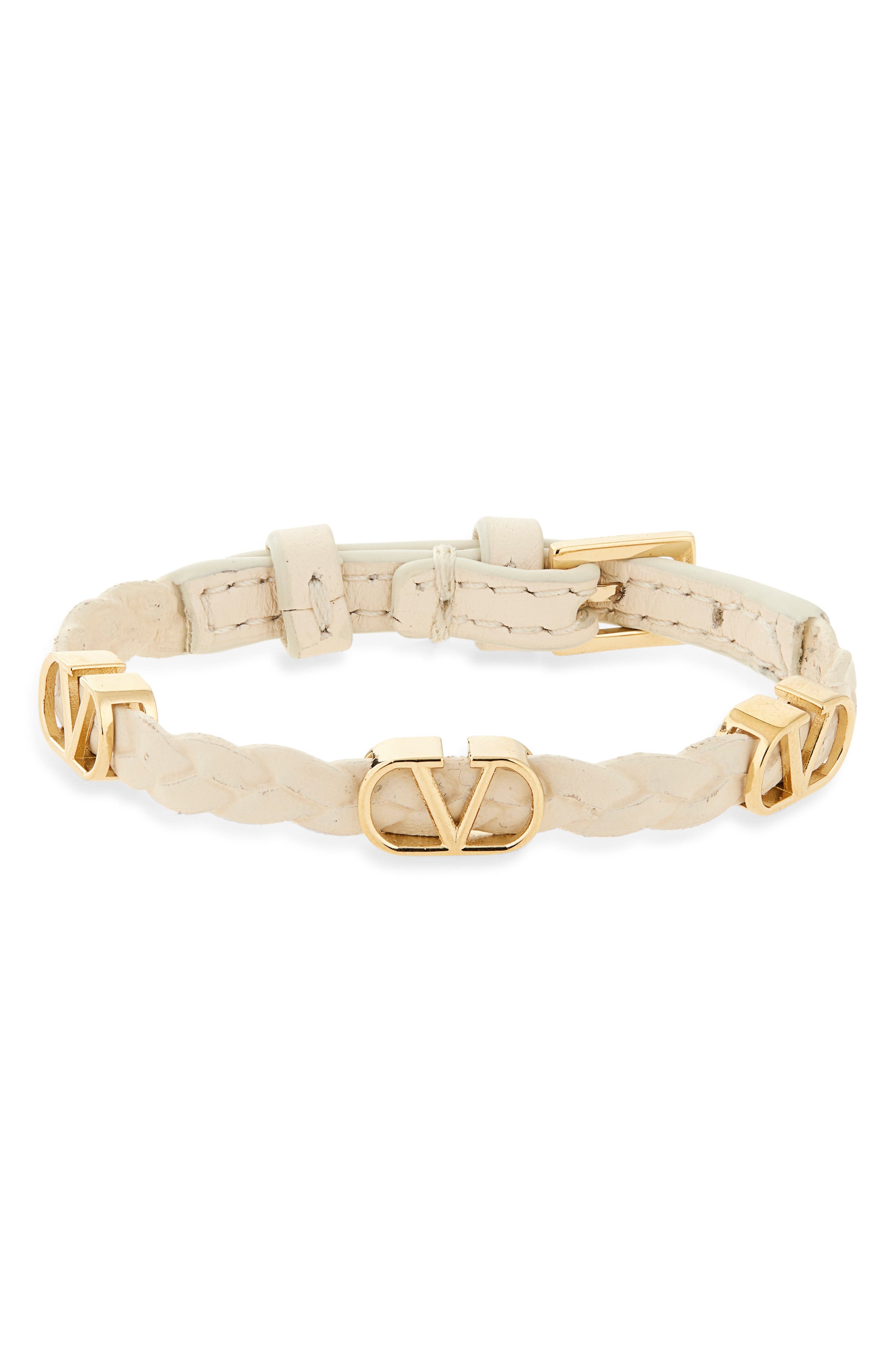 Valentino Garavani VLOGO Braided Leather Bracelet in Light Ivory at Nordstrom