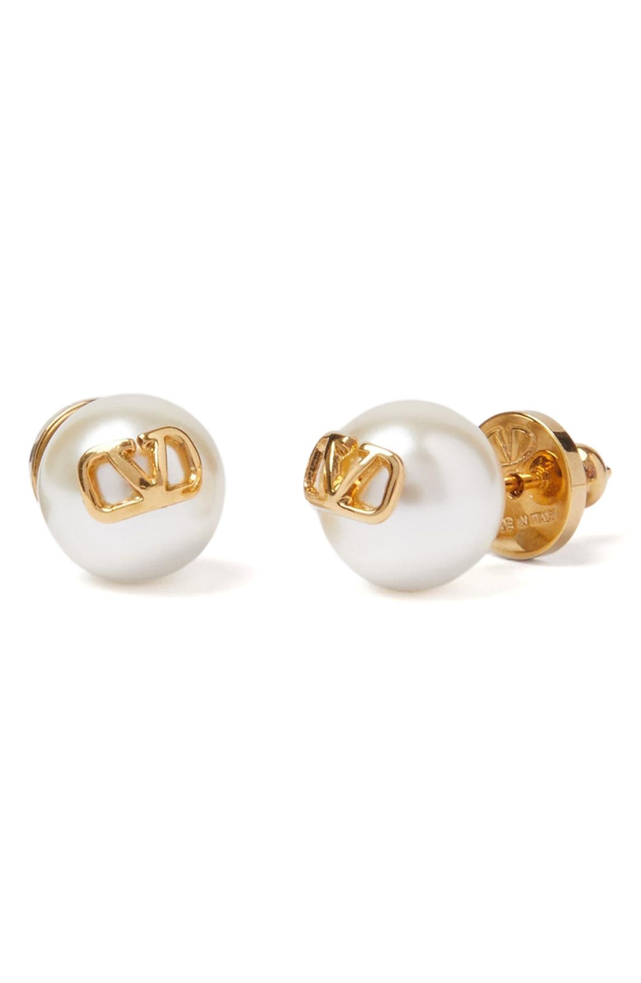 Lustrous imitation-pearl earrings adorned with a goldtone VLOGO make a glam addition to an everyday collection. Post back Resin imitation pearl/goldtone plate Made in Italy