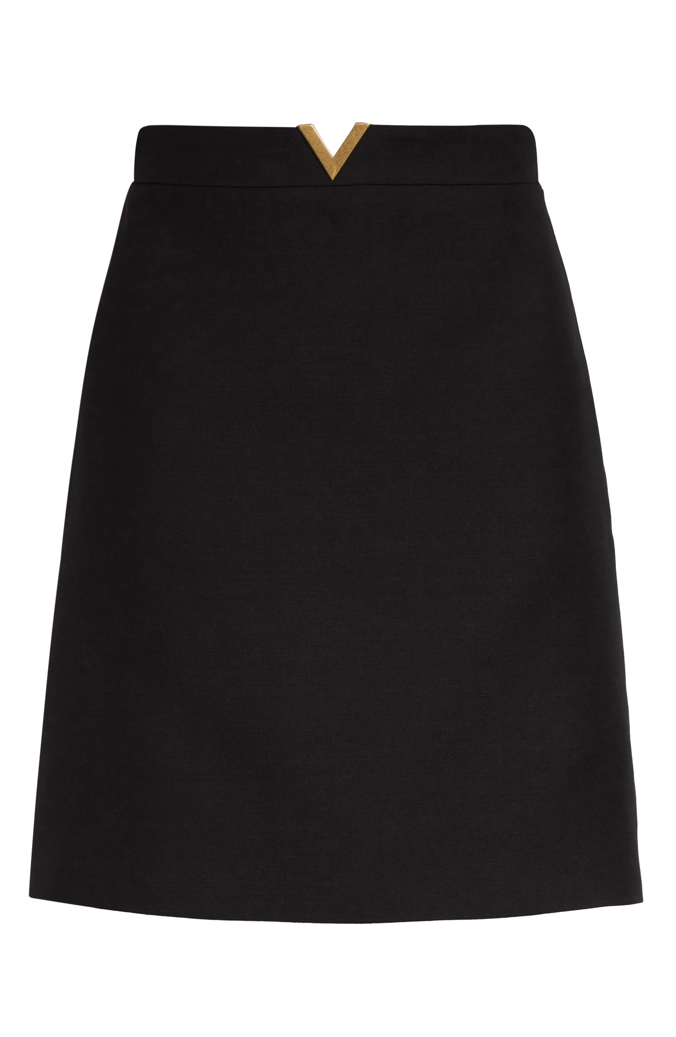Gillded V-shaped hardware segments the notched waist of this minimally adorned miniskirt fashioned from Valentino's woolly, silk-enriched Crepe Couture fabric. Hidden side-zip closure 65% virgin wool, 35% silk Dry clean Made in Italy Designer Clothing