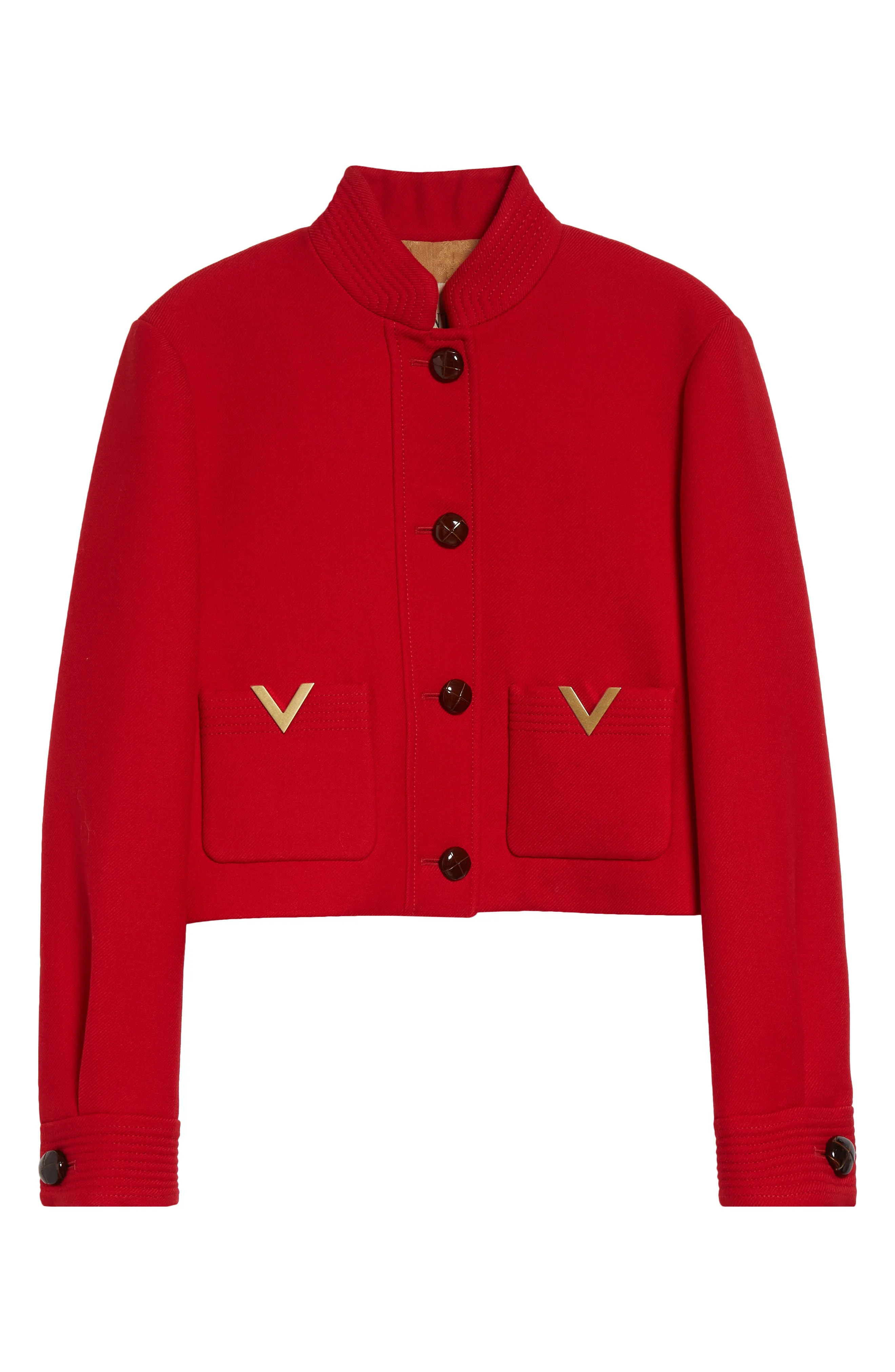Valentino V-Detail Wool & Silk Double Drill Jacket in Deep Red at Nordstrom