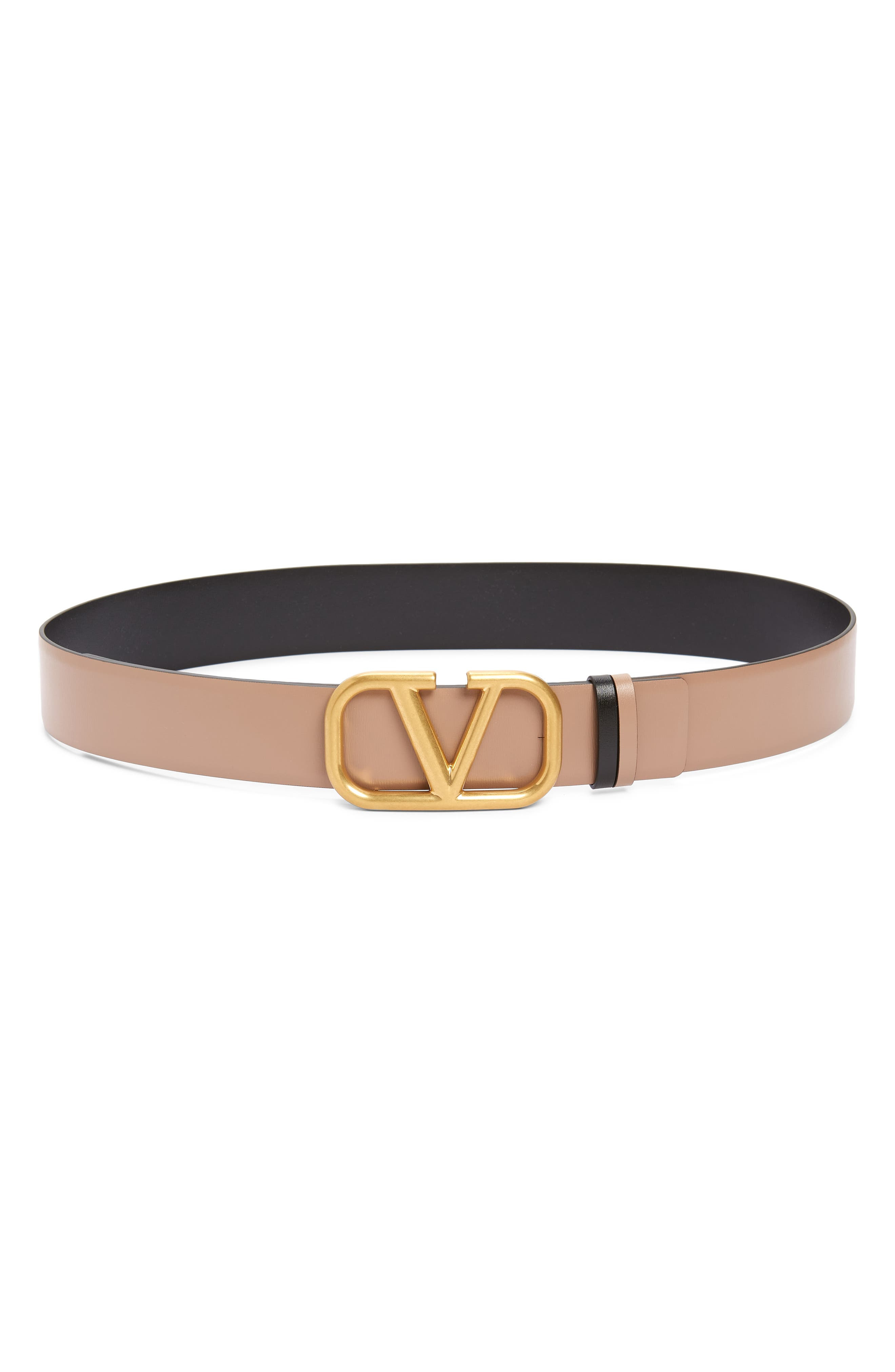 An antiqued VLOGO buckle based on a 1979 archival motif brands this reversible leather belt featuring two keepers to match or contrast with each side. Leather Made in Italy