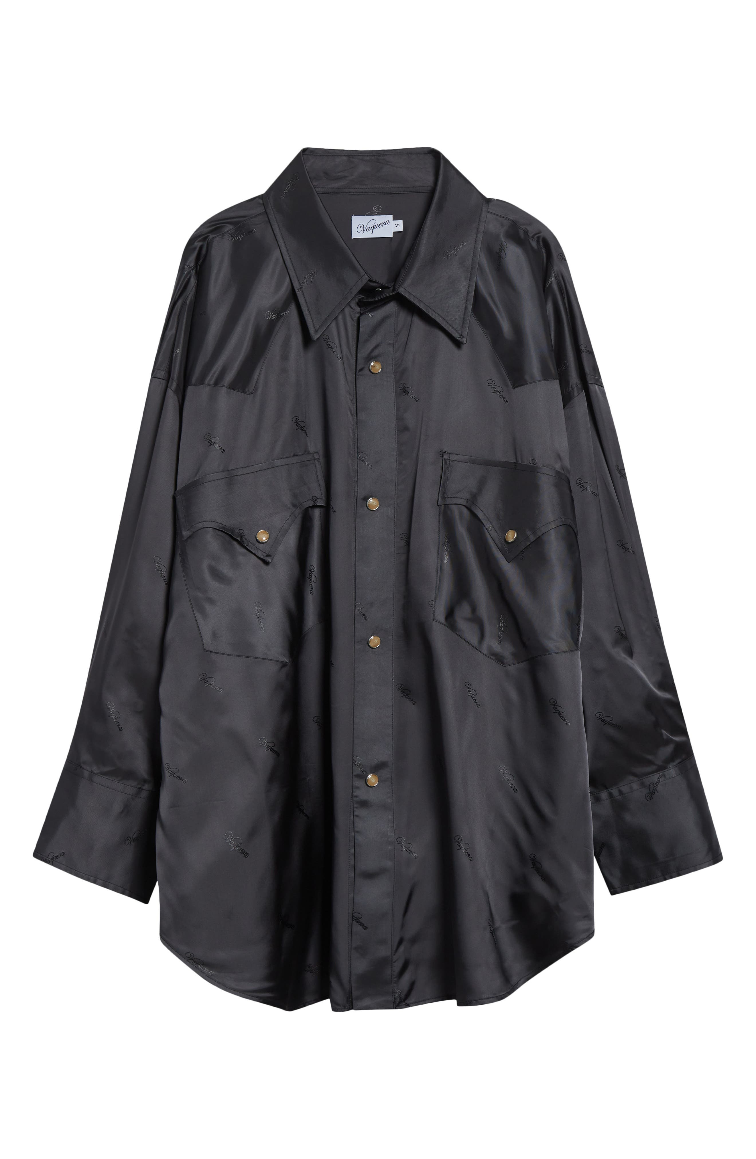 Vaquera Logo Jacquard Oversize Satin Western Shirt in Dark Grey at Nordstrom