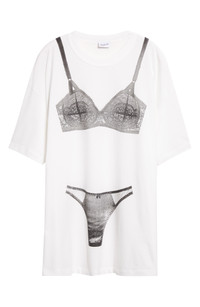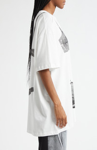 Forget subtle—this longline T-shirt makes a statement. The NYC label brings its signature downtown cool to life with flirty trompe l'oeil lingerie graphics that feel equal parts edgy and mischievous. Soft, breathable cotton keeps it grounded, but let’s be real: this piece is all about turning heads. Wholly owned by Comme des Garcons, this brand is part of Dover Street Market Paris, created with the goal of bringing emerging brands to market. Crewneck Elbow-length sleeves Dropped shoulders 100% cotton Dry clean Made in Turkey Designer Clothing