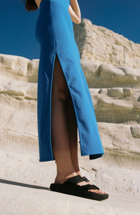 A slide sandal with a contoured, cushioned footbed and supportive sole made in part with bio-based and recycled materials puts smart comfort under every step. Adjustable straps cinch the go-to appeal whenever you're outside enjoying the sun. Adjustable hook-and-loop straps Leather upper and lining/synthetic and rubber sole Made in Brazil