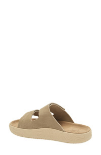 A contoured, supportive sole made in part with bio-based and recycled materials puts smart comfort under every step in a sandal topped with a softly brushed suede footbed. Adjustable straps cinch the go-to appeal every time you're outside enjoying the sun. Adjustable hook-and-loop straps Leather upper and lining/synthetic and rubber sole Made in Brazil