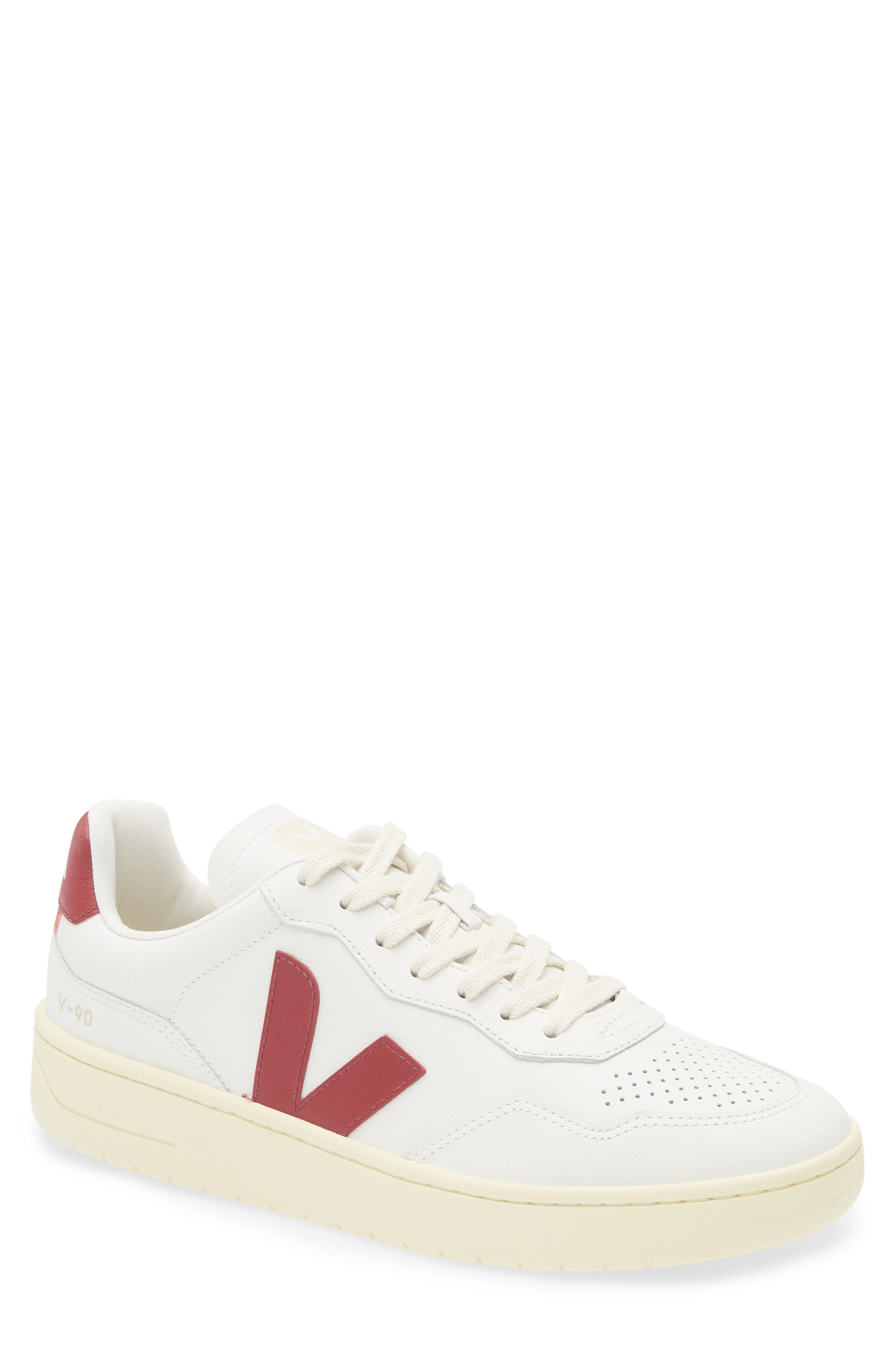 Veja V-90 Leather Sneaker in Extra-White Marsala at Nordstrom