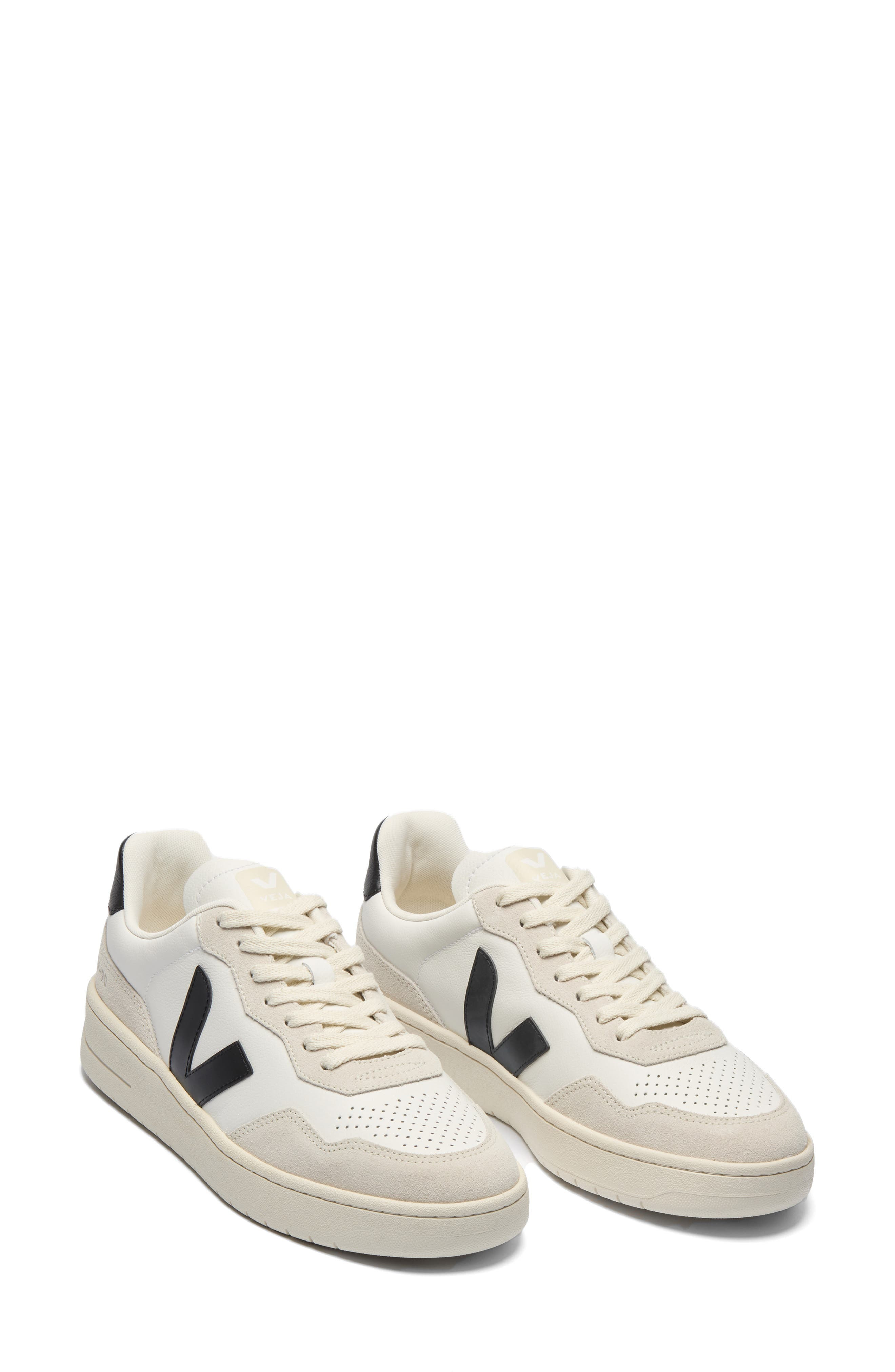 Veja V-90 Leather Sneaker in White Black at Nordstrom