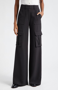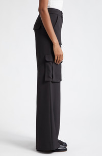 Cargo pants get down to business in a work-ready pair polished with center pleats and a more tailored silhouette. 33" inseam; 17" leg opening; 1 1/2" front rise; 13 1/2" back rise (size 8) Zip fly with hook-and-bar closure Front patch pockets; cargo flap-bellows pockets; faux back flap pockets 97% polyester, 3% elastane Dry clean Imported