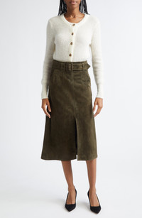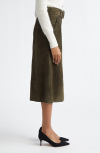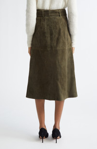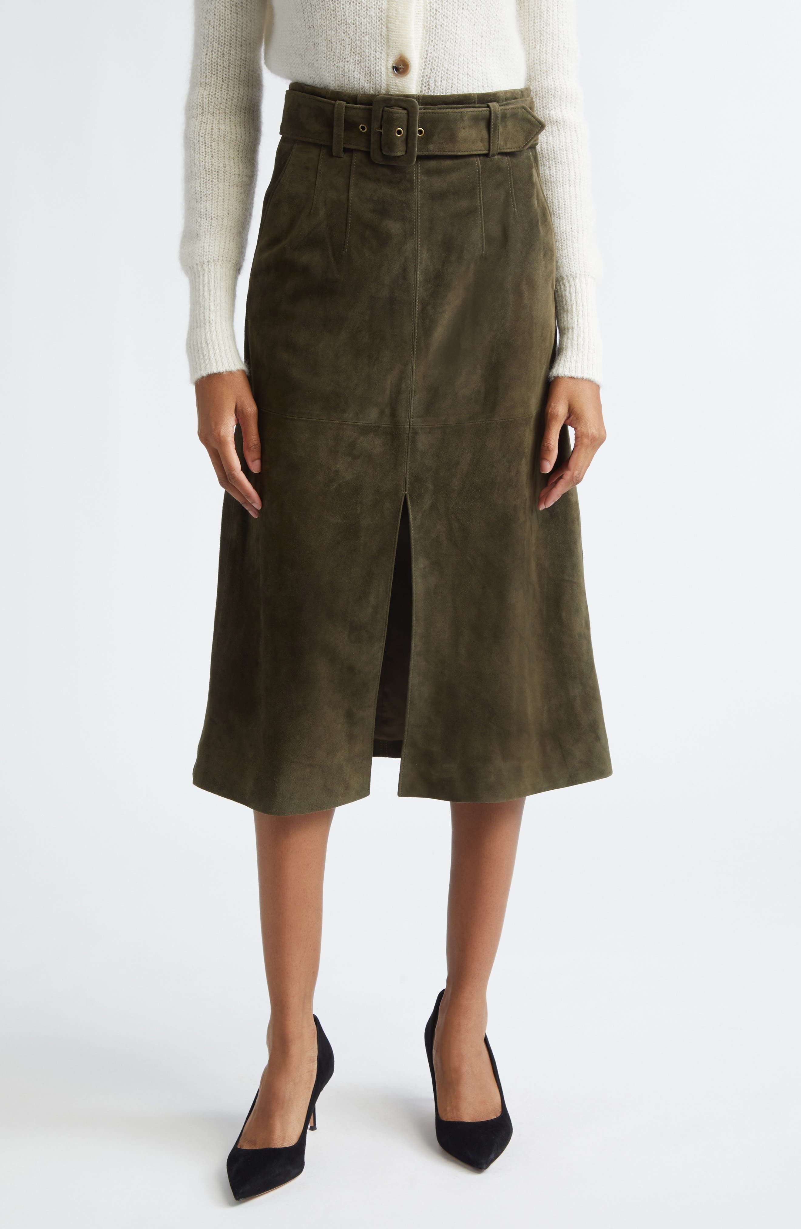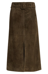 Add a shot of swagger to skirt day with a belted option crafted in rugged suede. Side-seam pockets Front slit Removable belt Leather Professional leather clean Imported
