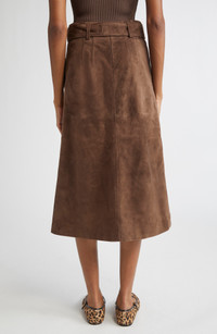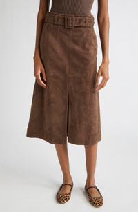 Add a shot of swagger to skirt day with a belted option crafted in rugged suede. Side-seam pockets Front slit Removable belt Leather Professional leather clean Imported