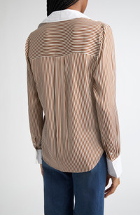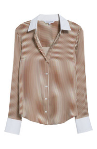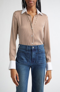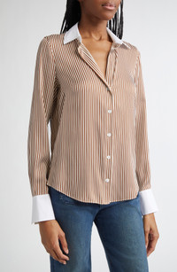 Veronica Beard Amelia Stripe Silk Blend Button-Up Shirt in Whisky Off White at Nordstrom