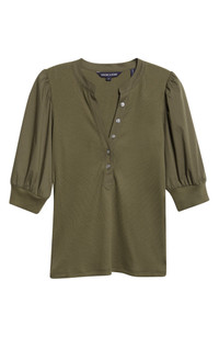 Veronica Beard Coralee Puff Sleeve Mixed Media Henley Top in Cypress at Nordstrom